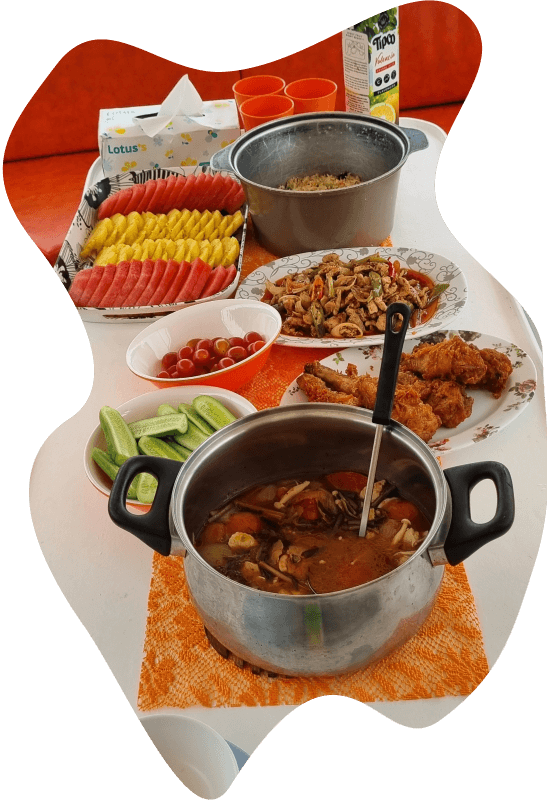 Reichhaltiges Abendessen mit Tom-Yam-Suppe